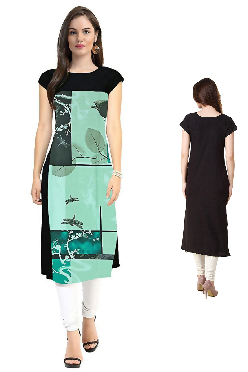Green-Stylish-Office-Wear-Digital-Print-Knee-Length-American-Crepe-Kurti
